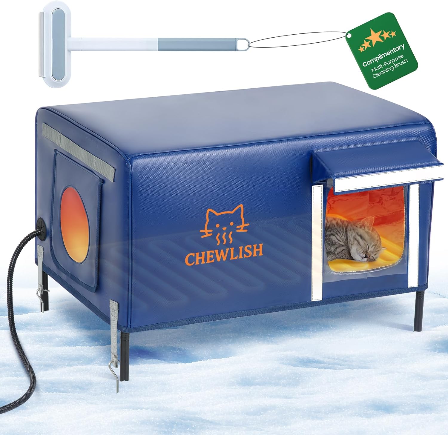 Outdoor Feral Cat Shelter with Waterproof Eaves & Magnetic Escape Door for Feral Barn